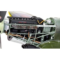 The first 100 Spitfire Mk.IX fighters were actually Mk.Vc airframes adapted to take the new Merlin 61 two stage, two speed supercharged engine, with this combination producing a thoroughbred fighting aeroplane, one which was more than capable of challenging the FW190 and the latest 'F' variant of the Messerschmitt Bf 109. In fact, the new Spitfire was considered so successful that this would become the second most heavily produced variant in the entire production run and if including the aircraft powered by the licence built Packard Merlin 266 (Spitfire Mk.XVI) even eclipsed the Mk.V in production numbers. With further powerplant refinement taking place throughout the production life of this variant, the first Mk.IX Spitfires started to join RAF Squadrons from July 1942, with this famous mark of Spitfire going on to see service past D-Day and into the post war era. The last major Merlin engine powered variant of the Spitfire, this 'emergency stop-gap fighter' actually became something of an aviation classic.