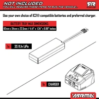 The high-quality Spektrum SLT2 2-channel transmitter is perfectly equipped for all drivers. With 3S power, it can help you learn control skills safely by limiting the desert truck's maximum available speed to 50% or 75% until you're ready for it all. Four AA batteries included.
