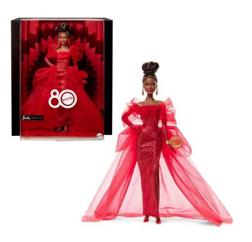 The Mattel 80th Anniversary Barbie doll honours the legacy of a company that has spanned decades and inspired children of all ages. From its humble beginnings in a tiny garage 80 years ago, Mattel forever changed how generations of kids play, creating iconic global brands that continue to impact culture, inspire dreams, and innovate for a bright future. This collector Barbie doll radiates glamour as she celebrates the momentous Mattel anniversary! Doll stand included. Doll cannot stand alone