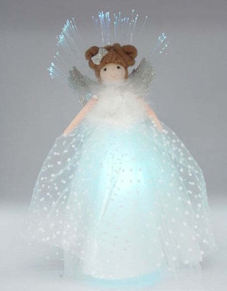 COTTON CANDY LED ANGEL TREE TOPPER WHITE SPOT DRESS
