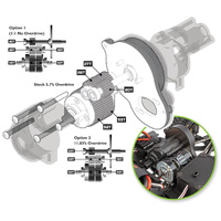 At the heart of the Enduro is our revolutionary StealthR X gearbox. Although the exterior appears to have a conventional 3-gear transmission look, the inside is far from conventional. The Stealth X features the ability to adjust the rear drive ratio independently of the front drive across three levels: stock overdrives the front end 5.7% (installed in RTR), option 1 provides a one-to-one drive ratio front-to-rear (available separately), and option 2 overdrives the front end 11.83% (included with RTR).