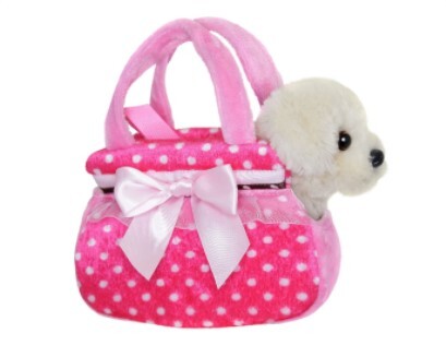 FANCY PALS GOLDEN LABRADOR IN PINK POLKA DOT BAG