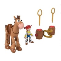 Young Toy Story fans can recreate their favorite movie moments or imagine new adventures with the Imaginext Disney and Pixar Toy Story Jessie & Bullseye playset. The set comes with a 3-inch Jessie action figure, Bullseye the horse figure, deluxe saddle and two lasso projectiles for epic pretend play. To expand the fun, Jessie and Bullseye are both articulated to make saving their friends a breeze the characters feature just-like-the-movie details for epic storytelling play! Colors and decorations may vary.