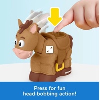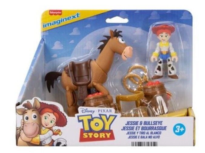 Kids can gallop into exciting pretend play featuring characters from Disney & Pixar’s Toy Story films with this Little People Bobbin’ Bullseye & Jessie figure set from Fisher-Price!
