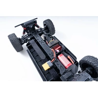 The 1/18 Ford Bronco RTR Fun-Haver EB packs big performance into a compact scale. Featuring an officially licensed Ford Bronco body with RTR styling and Nitto Trail Grappler M/T tires, it looks as aggressive as it drives. The new quick-release body design makes battery swaps and maintenance fast and easy, while buyers can choose between brushed or brushless versions to match their preferred power and runtime. A four-wheel independent suspension, full-time 4WD drivetrain, and front and rear anti-roll bars deliver stable, realistic handling across any terrain. Add in off-road LED lights, a chassis protection shell, a lightweight PC body with a detailed driver cockpit, and an enhanced cooling system, and you've got a scale package that's ready to rip on trails, rocks, or desert runs.