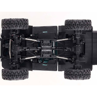 Upgraded metal chassis with oil-filled shocks, 4-link suspension, metal steering, ball bearings, and reinforced gears for maximum strength and crawling performance.