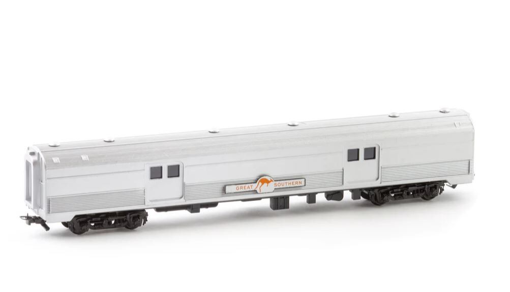 The Frateschi 2594 Great Southern Baggage Car is a finely detailed HO scale model representing the stainless‑steel Budd‑style baggage cars used on Australia’s luxury Great Southern train. Retailers describe this model as a silver‑finished passenger baggage coach designed to bring realism and authenticity to any HO gauge layout