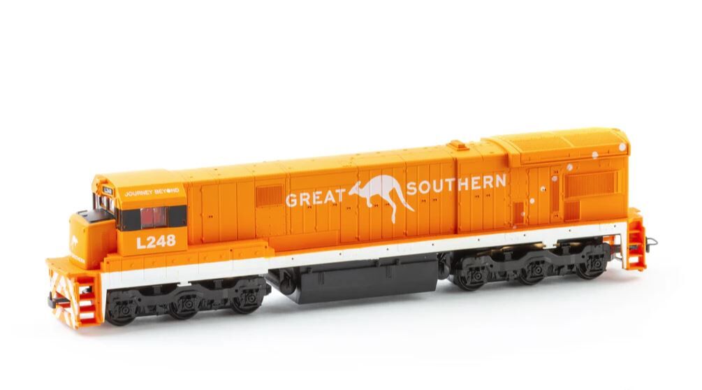 The Frateschi 3179‑L248 is a finely detailed HO scale model of the L Class diesel‑electric locomotive finished in the striking silver Great Southern livery. Retailers describe this model as an analogue (DC) locomotive designed for smooth running, with finely moulded details that reflect the premium long‑distance service operated between Adelaide and Brisbane.