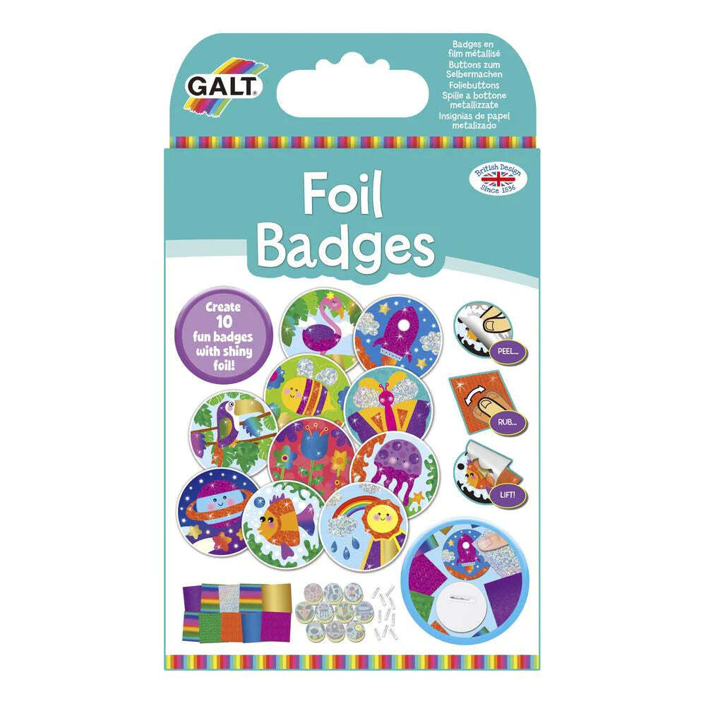 • Contents: 10 assorted foil sheets, 10 adhesive badge stickers, 10 badge backings, 10 badge pins and guide