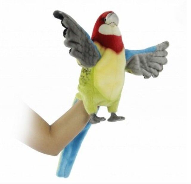 Hansa is renowned the world over for it's true to life recreations of the worlds most loved animals. This colourful and playful Eastern Rosella full-body Hand puppet is from the Australian Native collection and has been carefully hand crafted in partnership with wildlife experts and brought to life with meticulous attention to detail. This Rosellas bright and striking colours and feathers have been recreated with exceptionally soft faux fur and highlighted with airbrush detail. Airbrush shading also highlights his big eyes and blends his beak perfectly. With his outstretched wings, he is ready to shake his tail feather, simply pop your hand inside the beautifully lined fabric and watch him take flight. Not only on your balcony but now in your bedrooms and at playtime this Rosella makes the perfect gift or addition to your collection!