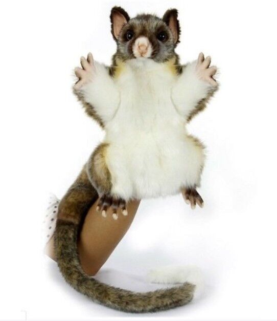 Hansa is renowned the world over for it's true to life recreations of the worlds most loved animals. This enchanting Possum full-body hand puppet is from the Australian Native collection and has been carefully hand crafted in partnership with wildlife experts and brought to life with meticulous attention to detail. The Possum's luxuriously soft faux fur has been beautifully hand trimmed to highlight her sparkling eyes and adorable pink nose. A wide mix of high-quality fabrics have been seamlessly blended to perfectly capture each of the possum's iconic features. The possum's trademark pointy ears have been highlighted with textured fabrics and fine airbrushing and the Possum's gorgeous little paws have been brilliantly recreated with a blend of rich chocolate and white airbrush shading. Simply pop your hand inside the beautifully lined fabric, wrap her tail around your arm and watch as she comes to life as the perfect gift for family and friends or even yourself!