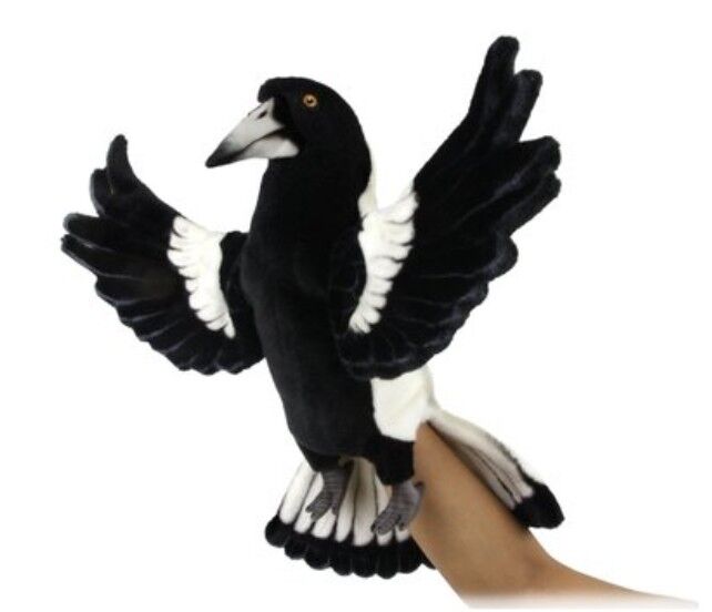 Experience the playful charm of Australia's iconic bird with the Hansa Magpie Puppet Soft Toy. Designed with an endearing nod to the magpie's cheeky nature, this puppet invites you to engage in fun and imaginative play—just be careful not to get swooped!