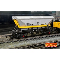 When originally designed in 1964, some hopper wagons intended for Merry-go-Round (MGR) trains were given an extension to their tops, known as a canopy or top skirt, which allowed their carrying capacity to be increased to 32 tonnes, using the full 45 tonnes gross laden weight allowed for a two-axle wagon. There were three basic types ‘HBA’, ‘HCA’ and ‘HFA’.