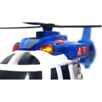 • This detailed helicopter features free-moving rotor blades, a sliding door, yellow flashing lights, emergency siren and chopper sounds