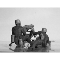 The set includes 15 parts for assembly of two figures of German machine gunners of WWII period, 47 parts of WWII German infantry weapons and equipment, 44 parts for assembly of MG08 machine gun model.