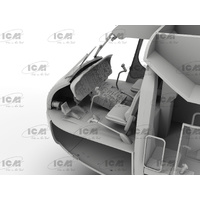 The S-64E features a six-blade rotor and two Pratt & Whitney engines. It has an all-metal fuselage and a three-seat crew cabin with two side-by-side pilot seats and a separate operator’s seat. The operator’s seat faces backward at a 180° angle, allowing monitoring of cargo through the transparent rear wall during loading operations.