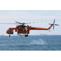 The Sikorsky S-64E Skycrane is the civilian version of the CH-54A Tarhe heavy twin-engine military helicopter. The military variant was widely used during the Vietnam War to transport heavy cargo, from artillery guns to combat boats.