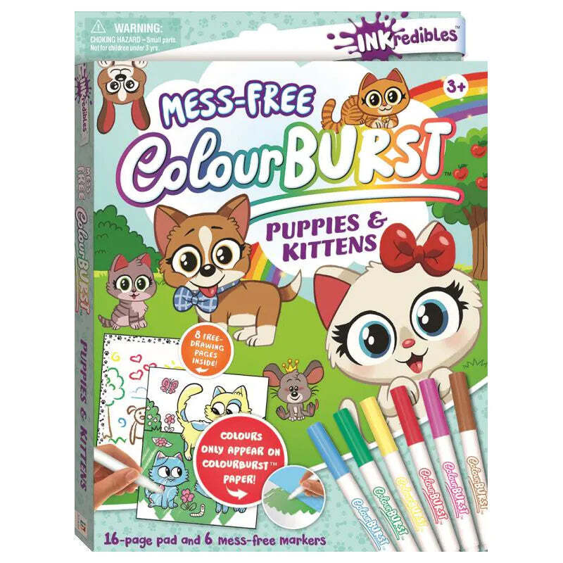 Inkredibles Colour Burst: Puppies and Kittens activity book. Featuring oodles of
