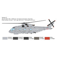 AW-101 Merlin is a medium-heavy multirole helicopter developed by AgustaWestland (now Leonardo) in collaboration with Westland Helicopters. It was designed and developed based on requirements from both the British Royal Navy and the Italian Navy to replace the now-obsolete SH-3D "Sea King." Entering service in the early 2000s, its primary role is that of an embarked anti-submarine warfare (ASW) helicopter. However, due to its operational flexibility, it is also well-suited, in its various configurations, for troop transport, maritime search and rescue (SAR), as well as combat SAR (CSAR) missions. It is capable of operating in extreme weather conditions and across all operational environments.Powered by three turbines, the Merlin reaches a maximum speed of 310 km/h and has an operational range exceeding 1,350 km.