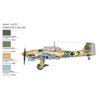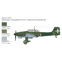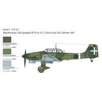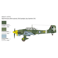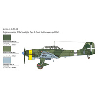 The JU-87 dive bomber is certainly one of the most famous airplanes of World War II. This characteristic “inverted gull wing” aircraft became famous at the early stage of the war and it can be considered, together with the Wehrmacht Panzer Division, the symbol of the “Blitzkrieg”.  The Italian Regia Aeronautica requested to the German ally, before the beginning of the war, a specific supply of one hundred “Stuka” to equip its ground attack and dive bombing Squadrons. The first Ju-87B units arrived in the summer of 1940 and went to equip the 96º Gruppo Bombardamento a Tuffo. The Ju-87, either in the B2 version or in the extender range R2 version, equipped other “Gruppi di Volo” for a total of 150 planes. The Italian “Stuka”, nicknamed “Picchiatello”, was used by Regia Aeronautica over Malta, in North Africa, in the Balkans and in the Mediterranean Theatre.