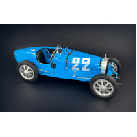 Bugatti Type 35 is among the most iconic and significant cars in the history of motorsport. A masterpiece by Ettore Bugatti, it represents an outstanding blend of engineering expertise, design, elegance, lightness, and speed. Produced during the 1920s, it achieved an extraordinary number of victories in both road and track competitions. Specifically designed for the racing world, it featured technical and mechanical solutions that made it ideal for the circuits of its era. Among its notable triumphs are the 1929 Targa Florio and the 1930 Monaco Grand Prix. From an aesthetic perspective, it was distinguished by the unmistakable horseshoe-shaped radiator grille, a signature of the Bugatti brand. Powered by an 8-cylinder 2,263 cc engine paired with a four-speed manual gearbox and equipped with a supercharger, the Bugatti Type 35 was capable of reaching a top speed of 210 km/h.
