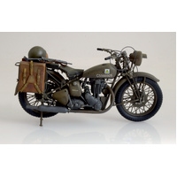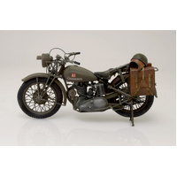 At the start of the 2nd WW, Great Britain did not have all the technical equipment needed for such a conflict, therefore a lot of vehicles were ordered urgently. Motorcycles, mainly used by the well known DR “Dispatch Riders” for communication between different units, were converted from civilian bikes with small changes, like military color and the addition of frames for the canvas bags. Triumph proposed in short time the model 3HW, based on the civilian “Tiger 80”, with an overhead valve engine and parallel forks.This model served on all fronts where the British Armed Forces fought, such as Africa, Europe and Asia. After 2nd WW these motorcycles were delivered to many other nations, such as Italy and Greece, where the Triumphs served for a long time thanks to their reliability and robustness.