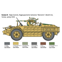 The “Camionetta Desertica modello 42 Sahariana” was developed for the Italian Royal Army based on the chassis and mechanics of the reliable armored car AB 41. During operations on the African front, there arose the need for a reconnaissance vehicle particularly suited to desert conditions, where sand terrain demanded specific characteristics not present in available vehicles. Thanks to its low-profile side and large wheels, the "Sahariana" was ideal for reconnaissance operations and conducting swift raids into enemy territory. Its good range enhanced the possibility of employing the vehicle for long-range operations. The type of armament could vary depending on the models and consisted of the Breda 20/65 mod 1935 machine gun, the effective 47/32 anti-tank gun, or the 20 mm Solothurn anti-tank rifle.