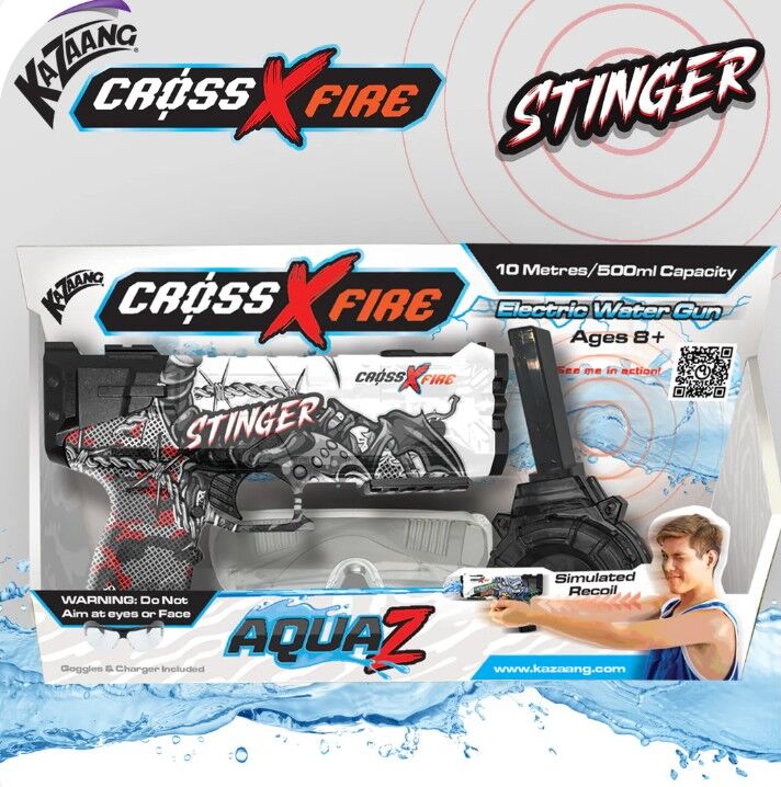 Gear up with the CrossXFire AquaZ and become the ultimate aquatic warrior, The Stinger! Are you ready to conquer the waterfight and reign supreme? Grab your AquaZ today and make a splash like never before!