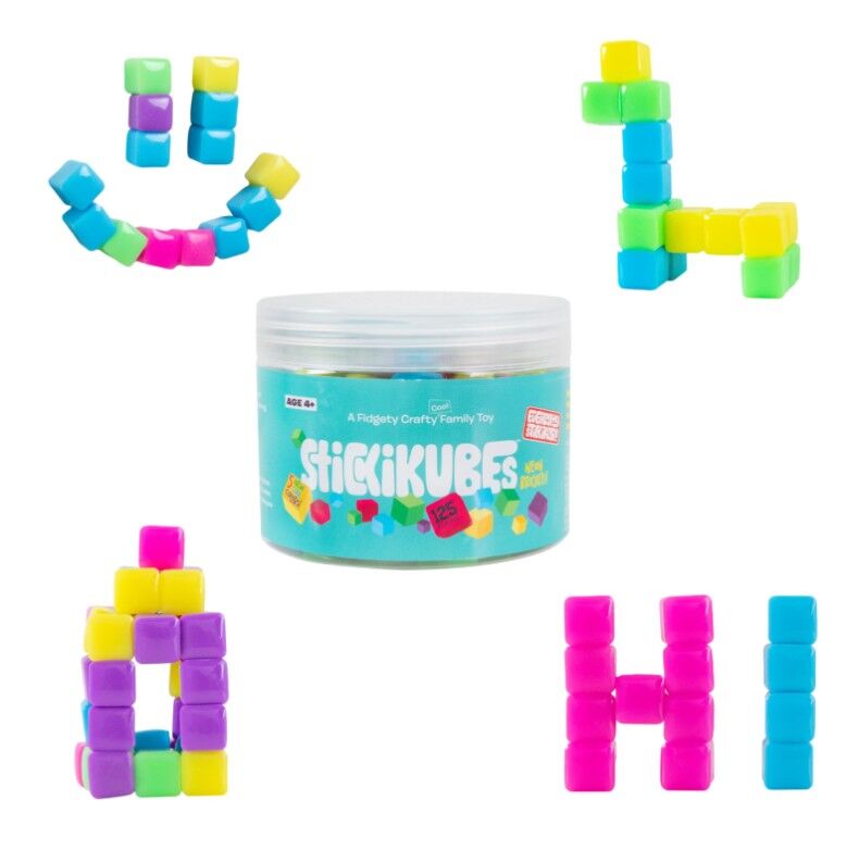 StickiKubes are the original mini stacking cubes that stick to almost any surface—except fabric. Kids can build vibrant neon 2D patterns or imaginative 3D models, and decorate anything from desks and shelves to lunchboxes and notebooks. Creativity knows no bounds!
