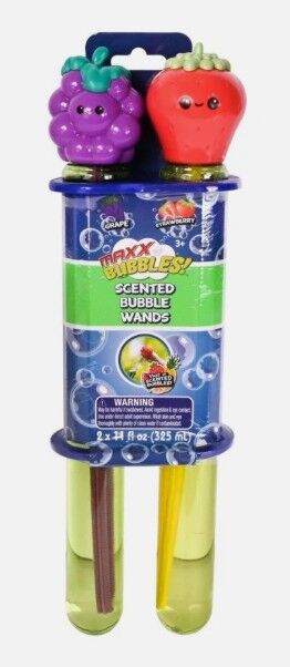 The bubble solution is available in two appealing scents: grape and strawberry, adding a delightful aroma to each bubble. The easy-to-use wands are attached to cheerful toppers featuring playful fruit characters, making it simple for kids to blow bubbles anytime and anywhere. The large size ensures hours of fun, making these bubble wands ideal for birthday parties, backyard gatherings, classroom rewards, or outdoor playdates.