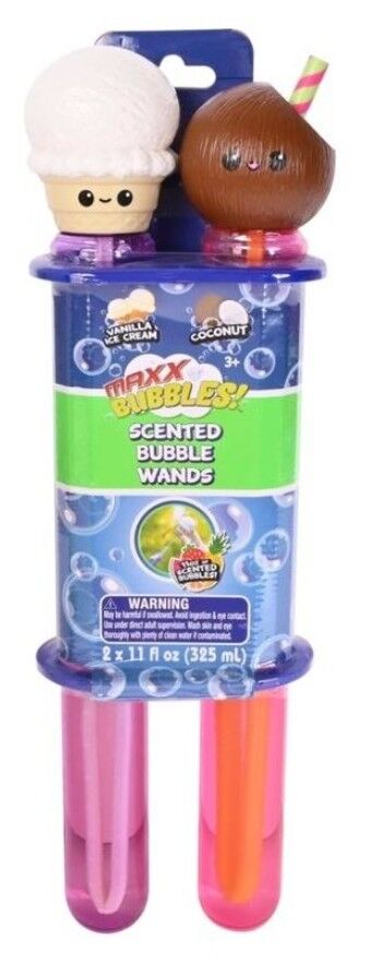 Make outdoor play and celebrations even more fun with the Maxx Bubbles Scented Jumbo Bubble Wands 2 Pack. Each set includes two large 11 ounce bottles of premium bubble solution in delightful scents of coconut and vanilla ice cream, designed to provide hours of entertainment for children and families alike.