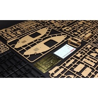 Parts are molded in brown and include decals and photo-etched (PE) parts.