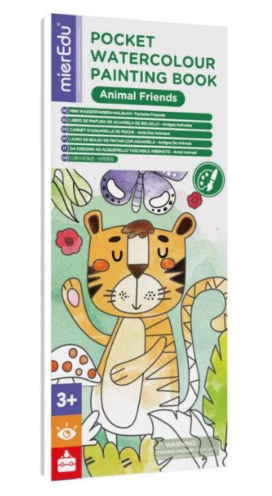 Small and light enough to paint anywhere. Picture book + colour palette + brush included.