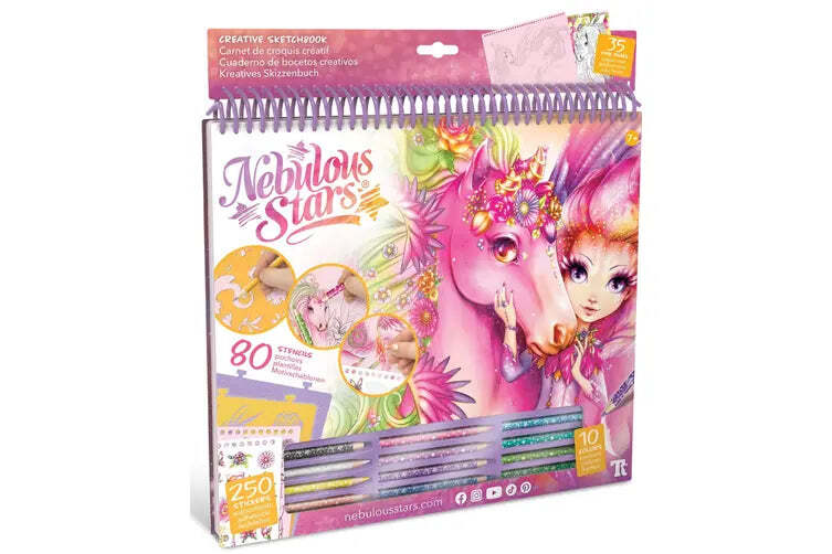 Includes: 35 sketch pages, 80+ stencils, 3 rub-on patterns, 250 stickers, 5 double-ended coloring pencils, 8 drawing techniques, Color theory, Nenuphia's complete story, Color instructions