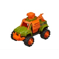 Each box includes all the pieces to build a 4″ truck and a 5-6″ dinosaur, and all the accessory weapons and armor. Every accessory piece can be snapped onto both the truck and the dinosaur so you can create your own fully customised adventures!