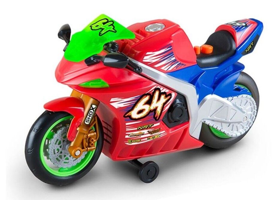 Watch the rear wheel glow as it burns up the streets in wheelie mode. Wheelie Bikes race off and pop super-high wheelies with realistic lights, sounds and music.