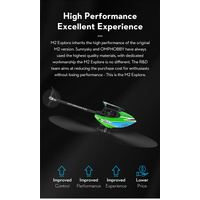 M2 Explore inherits the high performance of the original M2 version. Sunnysky and OMPHOBBY have always used the high quality materials, with dedicated workmanship the M2 Explore is no different. The R&D team aims at reducing the purchase cost for enthusiasts without losing performance - This is the M2 Explore. Six Core Advantages: Adjustable Flight Controller. Dual Brushless Direct Drive. High-performance 3d Flight. High Precision. Low noise. Easily maintained. The M2 Explore shares the same power system and flight controller as the M2 2020. To meet the needs of different flying styles we have opened the flight controller to allow for adjusting of the flight controller parameters. Coupled with the improved ESC’s this enhances the flight characteristics even further. Superior Craftsmanship: High strength nylon landing gear, inverted water drop shape tailpipe, integrated six-sided hollow CNC tailpipe fixing mount, directly connected rear carbon fiber fin with tail motor mount, carbon composite blade clip and swash plate, carbon composite servo housing as well as exquisite fiberglass canopy make sure M2 EXP improved in the respects of control, performance, experience and lower price. The dual ESC’s are improved using high-quality MOSFET’s with lower internal resistance, enhancing the flight characteristics even further. The built-in official receiver supports S-BUS and DSM / DSMX satellites.