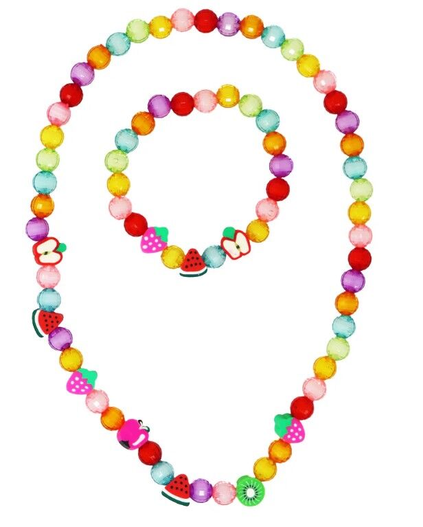 Add a splash of fun and colour to your little ones outfit with Pink Poppy's Fruit Necklace & Bracelet Set.