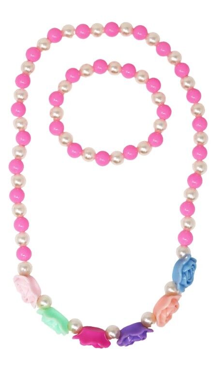 Delicate, dreamy and made to be adored — the Pink Poppy Rosy Candy Necklace & Bracelet Set brings a touch of everyday enchantment to every outfit.  Designed with a soft pastel floral colour palette and featuring rose shaped pastel candy coloured beads that feel modern, playful and perfectly on trend. Made with quality stretch elastic the necklace and bracelet are both lightweight and comfortable to wear, making it a  beautiful co-ordinating set that's perfect  for dress-ups, parties or adding a pop of sweetness to everyday outfits.