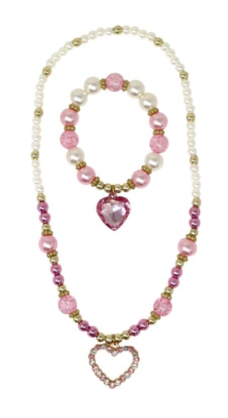 Pink Poppy’s Dance Pearl Heart Necklace & Bracelet Set is the perfect gift for your little one. Adorned with a stunning array of pearlescent and gold beads, this set adds a touch of glamour to any outfit. With charming pink heart pendants on both the necklace and bracelet, it’s designed to make your little one shine. Let them express their love for dancing and dressing up with this enchanting set!