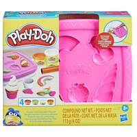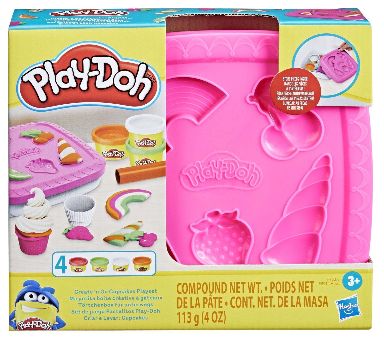 Set includes 4 ounces of Play-Doh modeling compound in assorted colors as well as a cupcake liner mold, a roller, and an extruder to make pretend frosting. The convenient reusable storage container keeps all the pieces together when playtime is over, and adds to the play with fun decorative half-molds in the lid to make a strawberry, cherry, rainbow, and more. This imaginative play toy makes a great arts and crafts activity for girls and boys ages 3 and up.