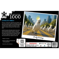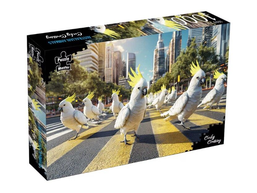This 1000-piece puzzle invites you into a playful Australian scene where nature and urban life collide in unexpected ways. A group of cockatoos confidently strolls across a pedestrian crossing, their vibrant plumage and iconic crests bringing character and charm to an otherwise familiar city moment. The scene captures the quirky spirit of Australia's wildlife, reimagined within a modern urban setting.