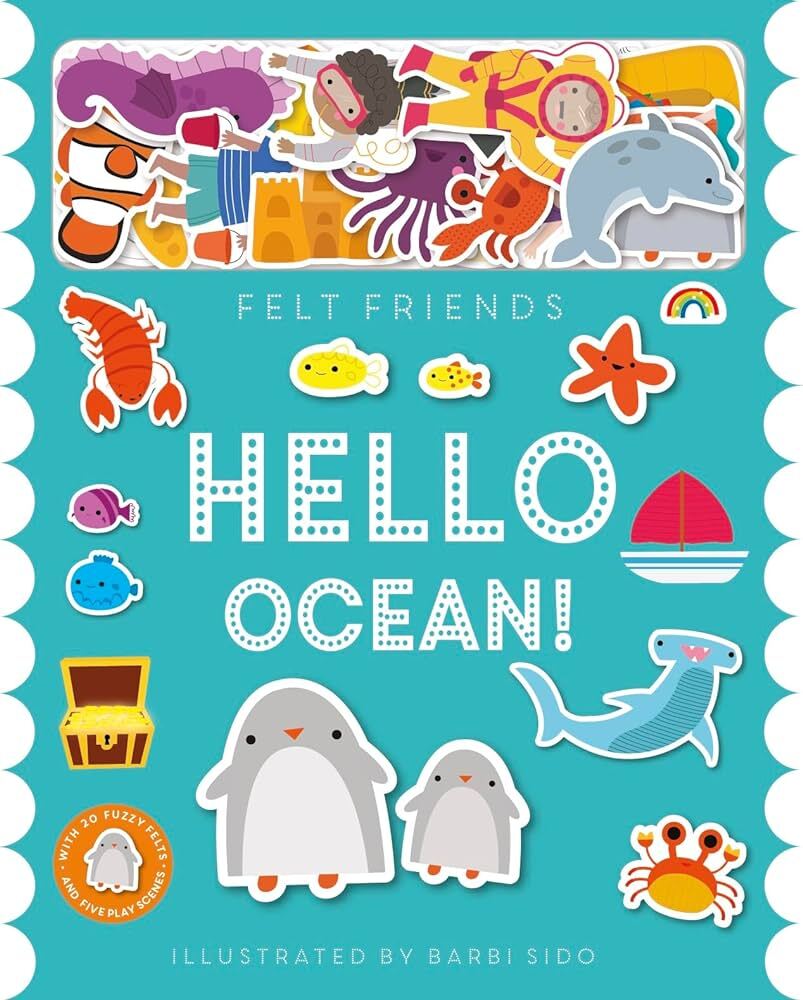 A novelty ocean book with soft fuzzy felt characters and objects to play with! Children will love matching the sea life pieces to the scenes and reading all about the ocean!