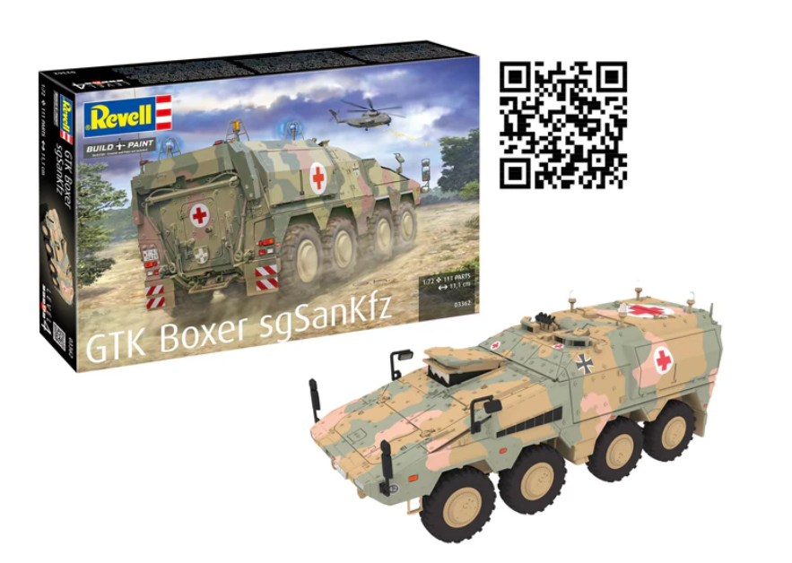 The GTK Boxer SGSankFZ combines maximum security with the highest mobility in the crisis area. As a faithful replica in 1:72 scale, this model kit enables you to set up one of the most modern medical vehicles in the Bundeswehr. With his detailed execution and authentic design, he is the perfect choice for ambitious model builders.