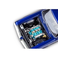The race for horsepower began in America in the fifties, but the car that really kickstarted the era of classic muscle cars was arguably the 1964 Pontiac GTO. The GTO combined Pontiac's muscular 389-cubic-inch V8 with its lightest car, the redesigned, midsize '64 Tempest LeMans. This easy-to-build 1:24 scale Revell 2'n1 kit features some of the car's best-remembered factory features, including the triple two-barrel "tri-power" carburetors, a four-speed manual gearbox and a dual exhaust. Building instructions are included, so that skilled builders can convert the two-door "Post" coupé body into a hardtop. Optional road parts include a second bonnet, which has been cut out to accommodate the chrome-plated blower with two four-cylinder fans and intake manifolds. Other hot rod goodies are a raised rear suspension and special rims in the style of the eighties.