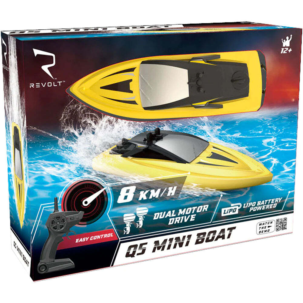 Make waves with this 2.4GHZ Remote Control Mini Boat (23cm/9in. Long). Features dual propellers with full function movement in all directions, waterproof, anti tilt hull. Not intended for use in salt water.