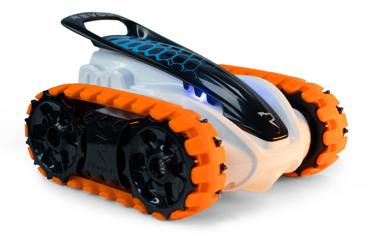 BIOTRAX is a powerful track vehicle capable of 360 spins, wheelies, and speeds up to 8 km/h (5 mph). 2.4 GHz easy-to-control, full-function vehicle to move in all directions. Play with up to 10 vehicles at once. Cool lighting makes the vehicle visible in the dark.