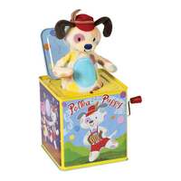 Schylling’s Polka Puppy Jack-in-the-Box brings a whimsical new dancing feature to the traditional jack-in-the-box. The earliest jack-in-the-box is thought to have been made as a birthday gift for a prince in Germany during the 1500’s. Today, Schylling has created a new -jack-in-the-box with an innovative play experience, perfect for its youngest fans. The Polka Puppy pops up like a traditional Jack-in-the-Box but after it pops up, the adorable Puppy dances back and forth to the tune of ‘Pop Goes the Weasel.’ The puppy dances for as long as the handle is turned. The adorable dancing feature is a great way to introduce a young child to jack-in-the-box play. Polka Puppy allows young children to first get used to the character and gentle dancing movements and soon they are ready for the surprise popping action. The graphics on the sides are embossed, playful images that will appeal to children of all ages.