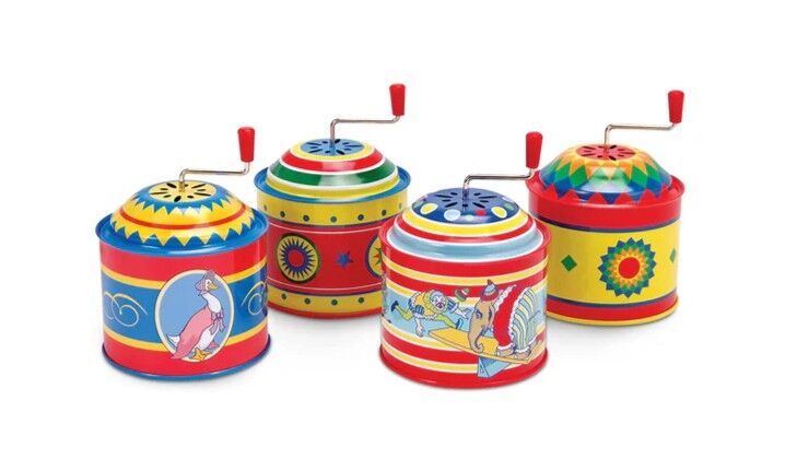These tiny music boxes are like a classic little hurdy gurdy. As you crank the handle you'll hear a beautiful and simple tune. There are four designs and two tubes. At the moment, we're not able to guarantee a choice, but you're welcome to leave a note in the Shopping Cart and we'll do our best.
