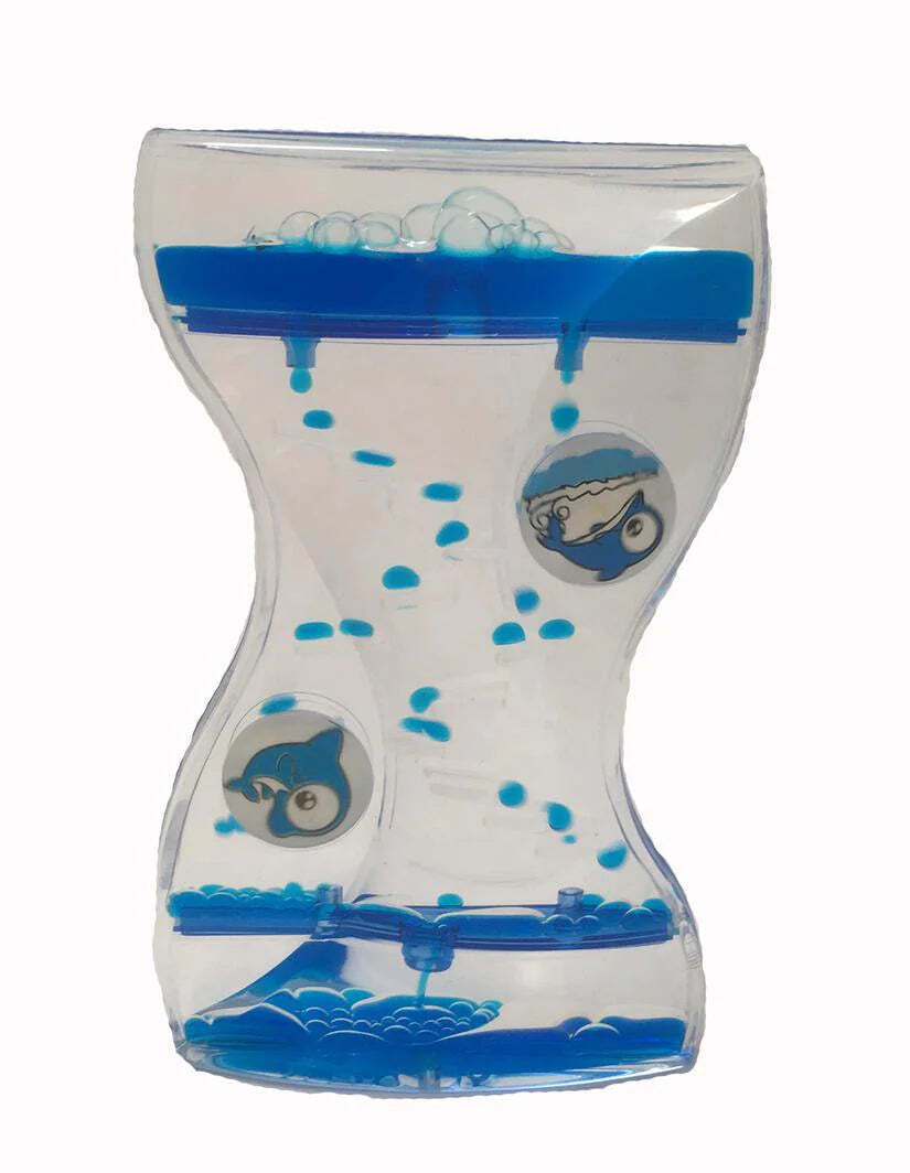 This liquid oil drop timer has a twist in the center and two rolling wheels to add interest.